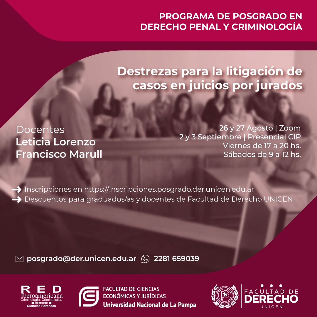 Inscripciones a: https://inscripciones.posgrado.der.unicen.edu.ar/